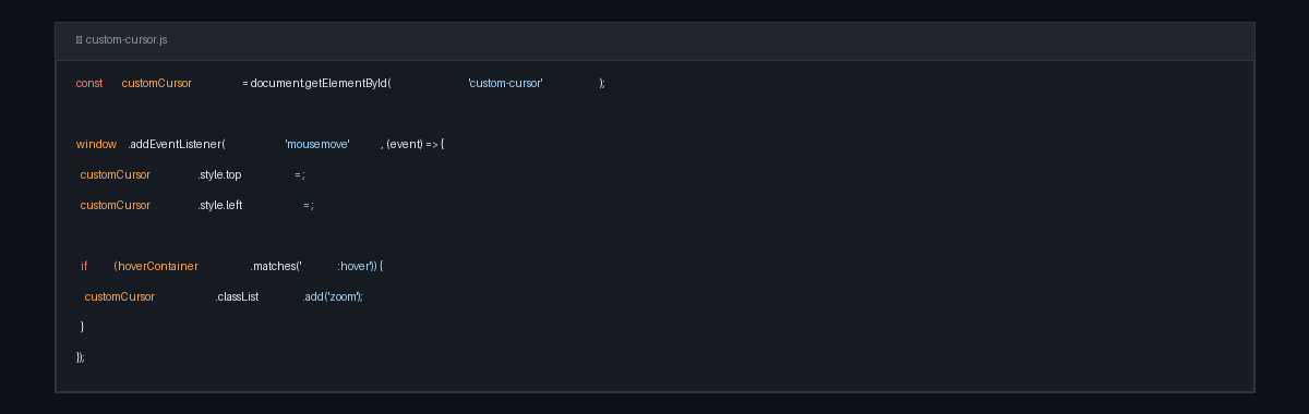 - Simpan referensi elemen cursor di luar event handler untuk menghindari query DOM yang berulang di setiap frame.