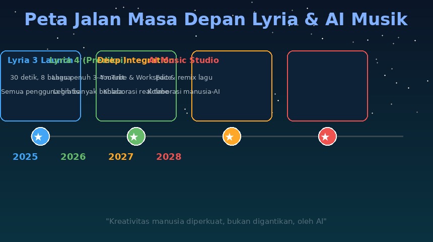 Gambar 8: Peta jalan prediktif perkembangan Lyria dan teknologi AI musik hingga 2028