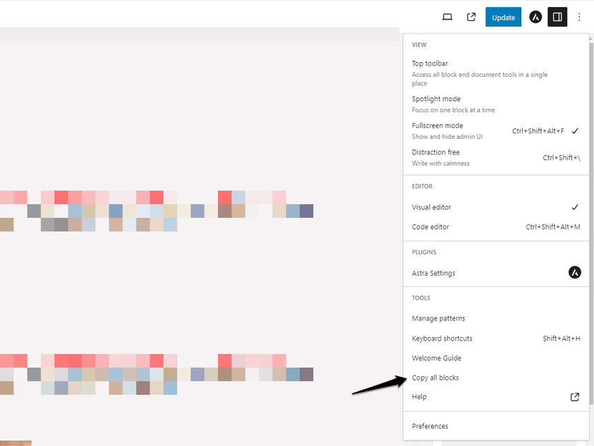 2. Click the upward arrow next to the Update or Publish button (usually bottom-left or top bar).