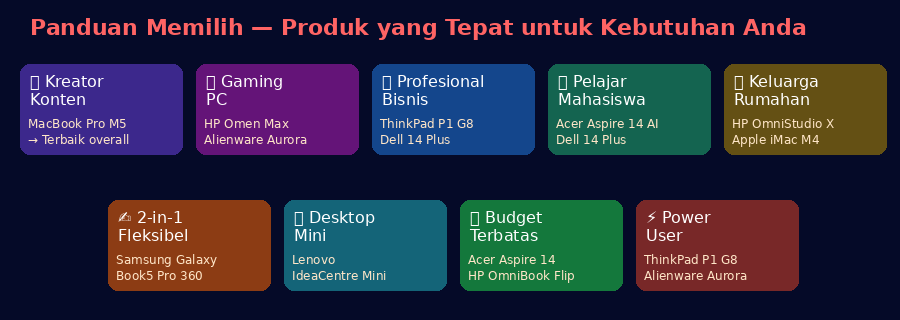 Panduan memilih berdasarkan kebutuhan dan profil pengguna — dari gaming hingga keluarga