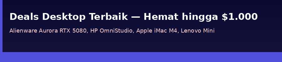 🎮 Gamer Serius (Desktop): Alienware Aurora ($2.799) — RTX 5080 flagship dengan $1.000 diskon. Battlestation terkuat untuk gaming 4K tanpa kompromi.