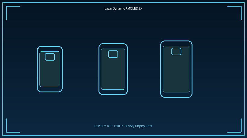 Tiga ukuran layar Dynamic AMOLED 2X dengan 120Hz: 6,3", 6,7", dan 6,9" dengan Privacy Display eksklusif di Ultra