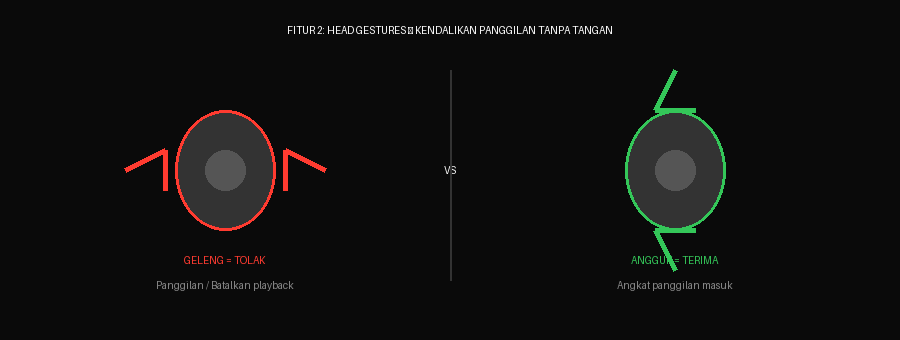Head Gestures: angguk untuk menerima panggilan, geleng untuk menolak panggilan atau menghentikan playback.