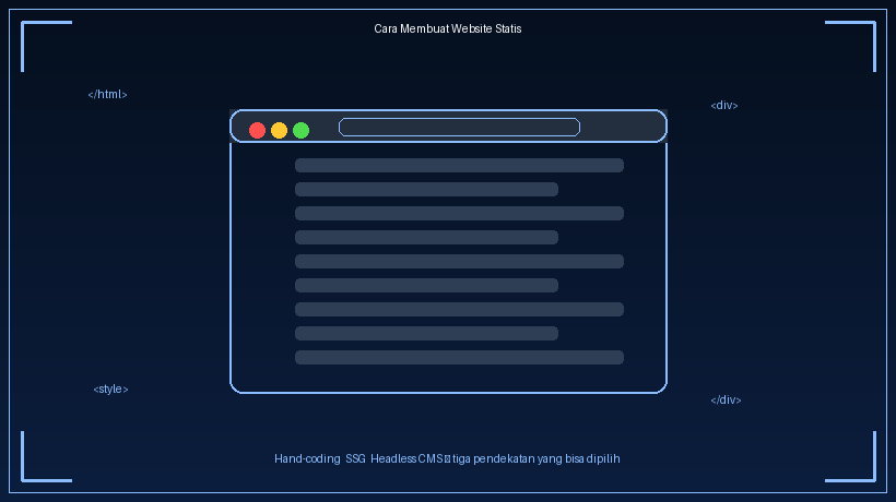 Tiga jalur membangun website statis: hand-coding manual, static site generator, atau headless CMS